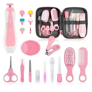 Baby CareBaby Grooming Kit – 19 in 1 Nursery Essentials Baby Registry Shower Gift for Newborns, Infants, Toddlers, Boys, Girls Kids-Safety Baby Comb, Brush, Finger Toothbrush, Nail Clippers, Scissors(Pink)