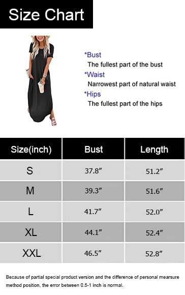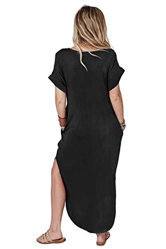 HAVANSIDY Women’s Short Sleeve Maxi Dresses Side Split T-Shirts Long Dresses with Pockets