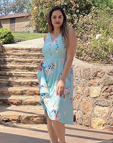 II ININ Women Summer Midi Dress Trendy 2025 Casual V Neck Sleeveless Tank Button Floral Beach Sundress with Pockets