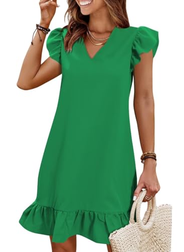 JOCAFIYE Womens Dresses V Neck Ruffle Cap Sleeve Beach Sundress Summer Dress for Women 2025